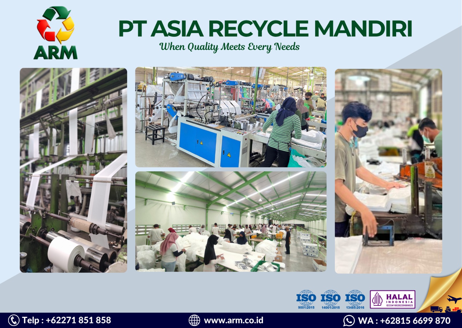 PT ARM (Asia Recycle Mandiri) is a plastic manufacturing company established in 2000, located at Jl. Raya Solo–Purwodadi Km 7.8, Selokaton, Gondangrejo, Karanganyar, Central Java, Indonesia.